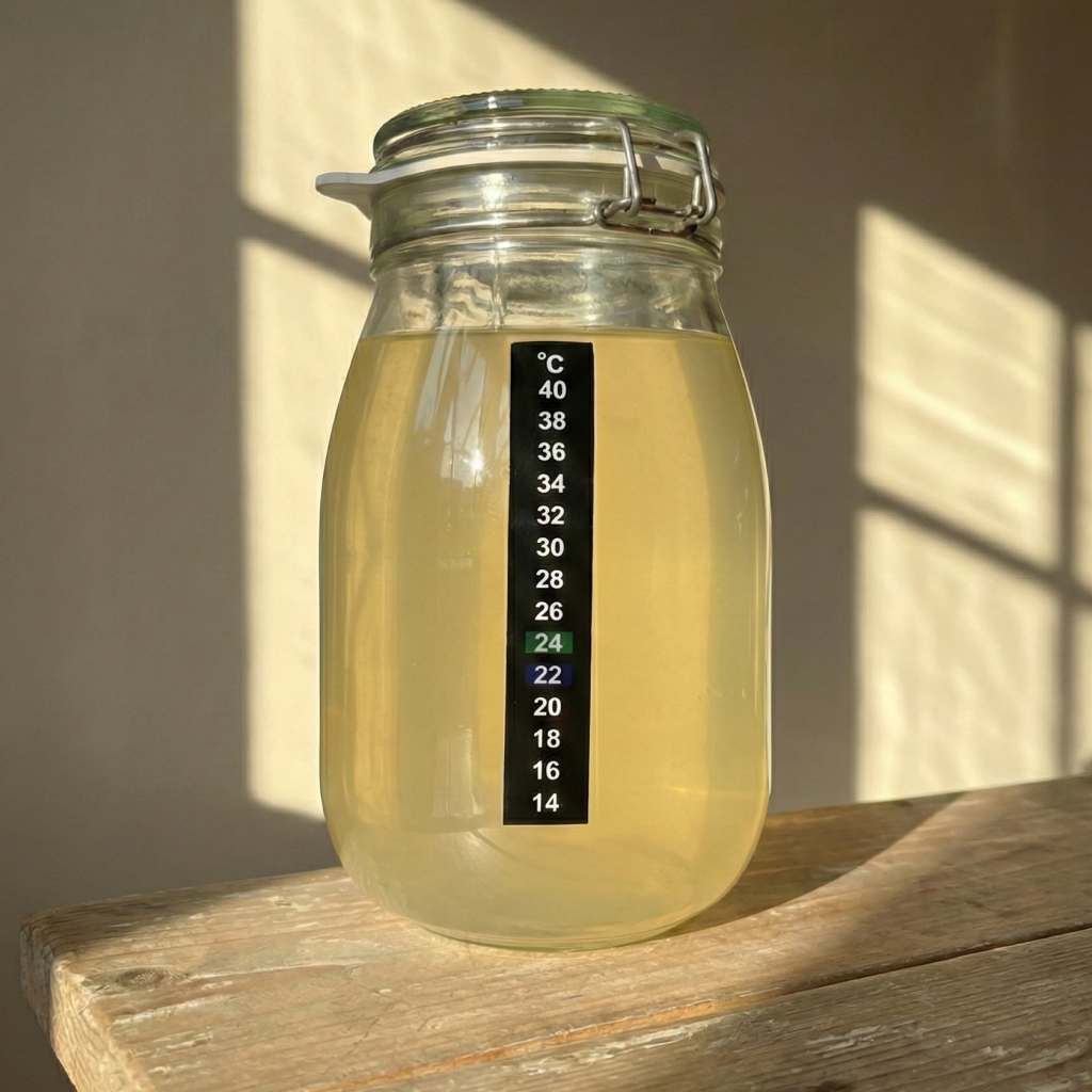 Goede fermentatie begint bij de juiste temperatuur. Voor melkkefir en waterkefir ligt die tussen de 21 tot 23 graden. Is het te koud, dan vertraagt het proces. Is het te warm, dan worden je korrels te actief en verandert de smaak sneller dan je wilt.